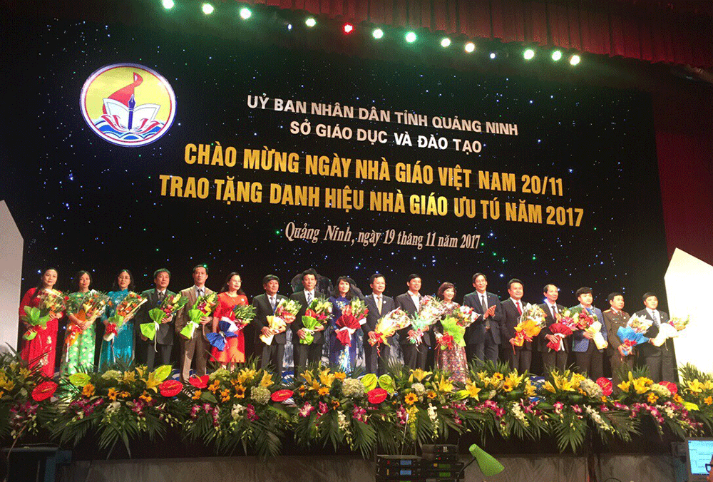 Tối 19/11, tại Cung Văn hóa Lao động Việt- Nhật (TP Hạ Long), Sở GD&ĐT tổ chức chào mừng Ngày Nhà giáo Việt Nam và trao tặng danh hiệu Nhà giáo Ưu tú năm 2017. Tới dự có các đồng chí: Nguyễn Văn Đọc, Bí thư Tỉnh ủy, Chủ tịch HĐND tỉnh; Đỗ Thị Hoàng, Phó Bí thư Thường trực Tỉnh ủy; Nguyễn Đức Thành, Phó Chủ tịch HĐND tỉnh; Vũ Thị Thu Thủy, Phó Chủ tịch UBND tỉnh. Về phía Bộ GD&ĐT có đồng chí Vũ Minh Đức, Chủ tịch Công đoàn Giáo dục Việt Nam.