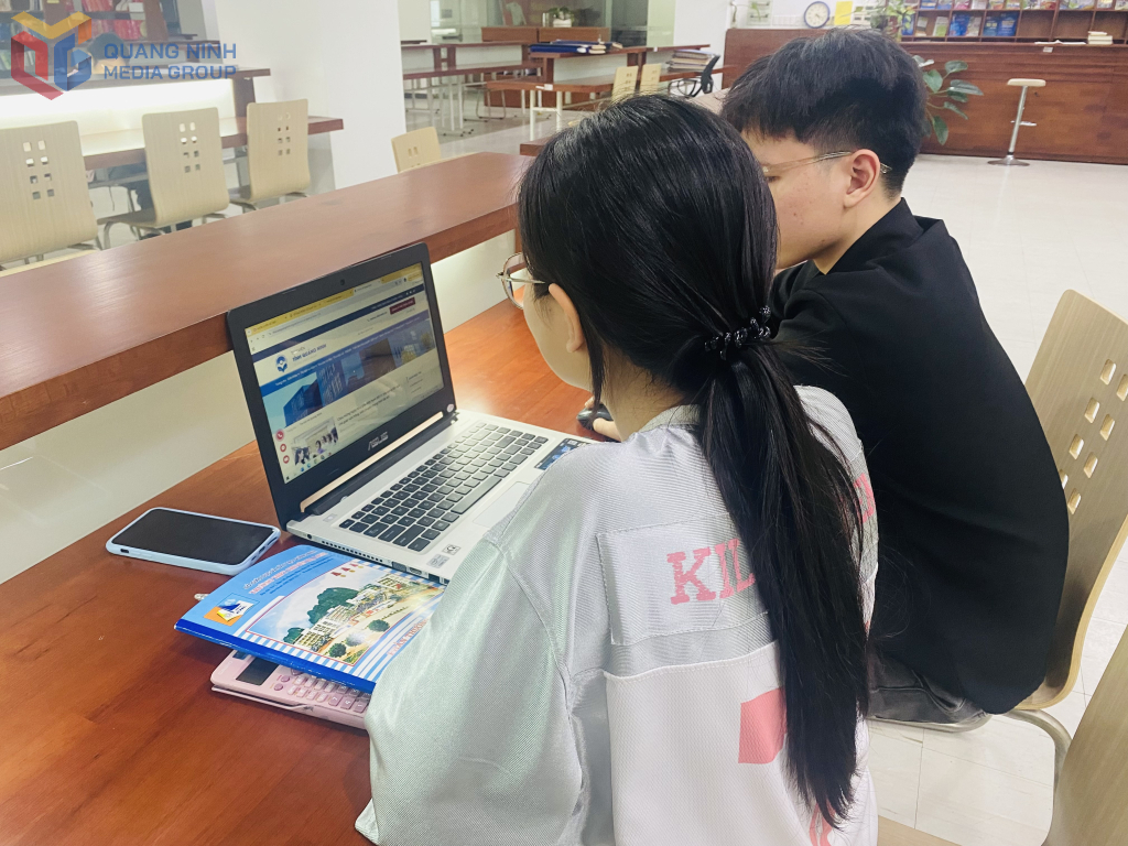 Đỗ Thanh Mai, học sinh lớp 12 chuyên Sử, Trường THPT Chuyên Hạ Long cùng bạn tra cứu tài liệu phục vụ cho học tập.
