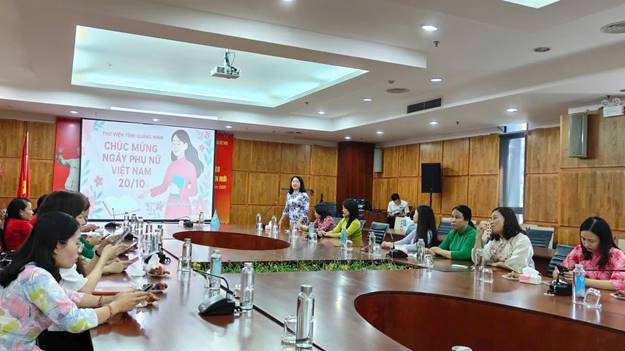 Sáng ngày 17/10/2025, Thư viện tỉnh Quảng Ninh phối hợp cùng chuyên môn, tổ chức gặp mặt chị em cán bộ, viên chức, người lao động (CBVC - NLĐ) chào mừng kỷ niệm 95 năm Ngày thành lập Hội Liên hiệp Phụ nữ Việt Nam (20/10/1930 - 20/10/2025).